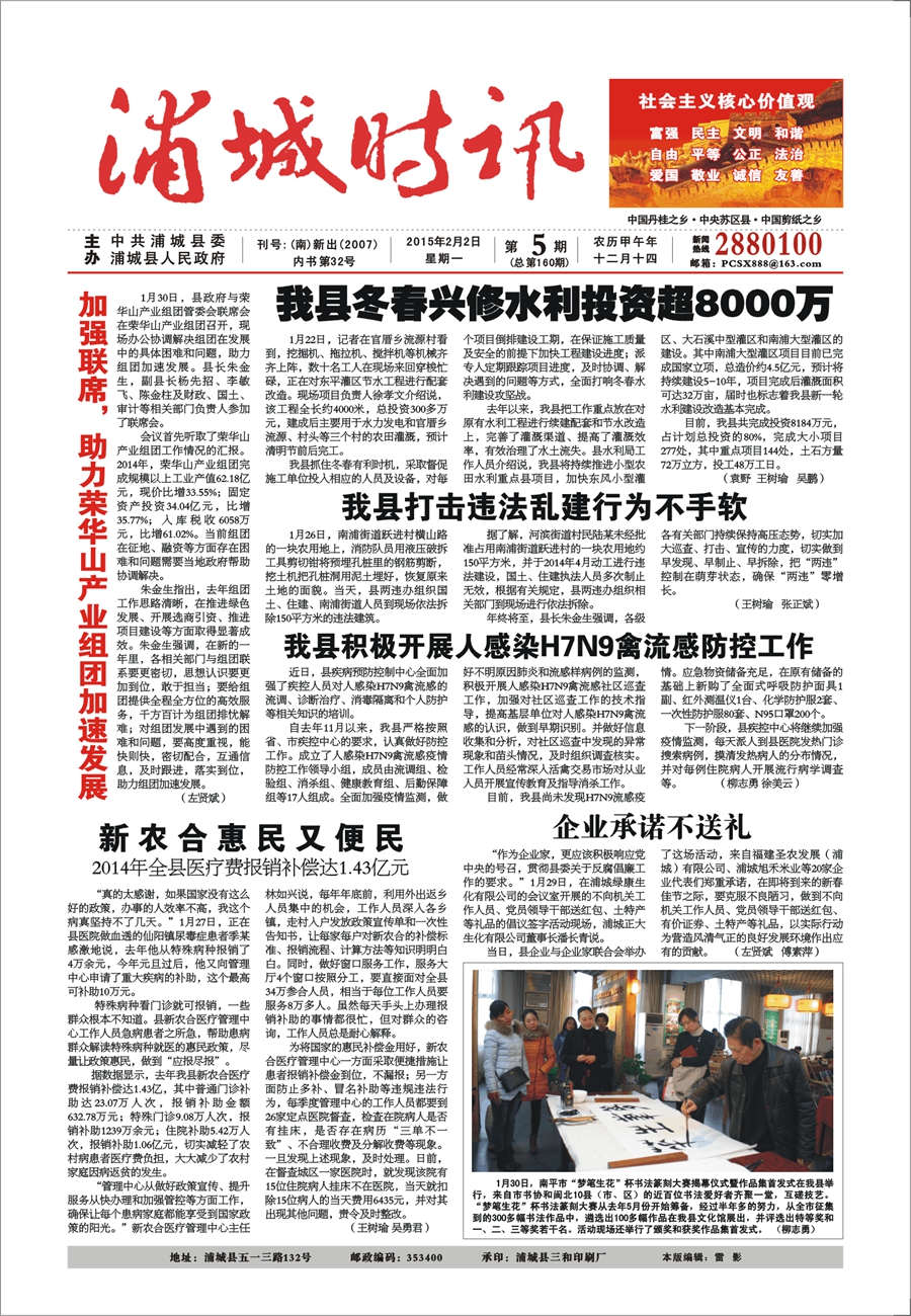 | 2015-02-02 15:09:58??來源:浦城新聞網(wǎng) 責(zé)任編輯:鄧忠衛(wèi) 我來說兩句 |