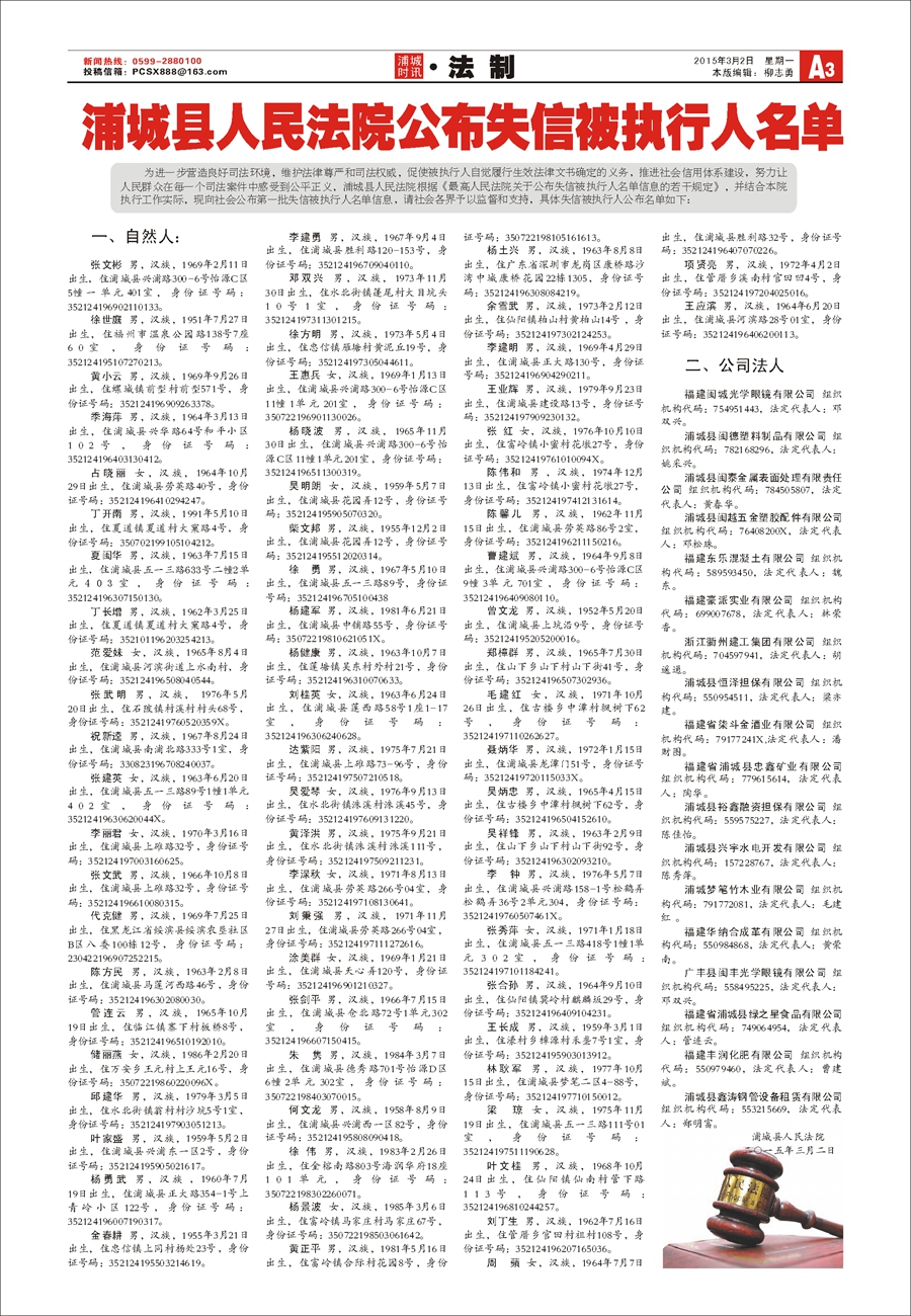 | 2015-03-13 10:38:29??來(lái)源:浦城新聞網(wǎng) 責(zé)任編輯:鄧忠衛(wèi) 我來(lái)說(shuō)兩句 |
