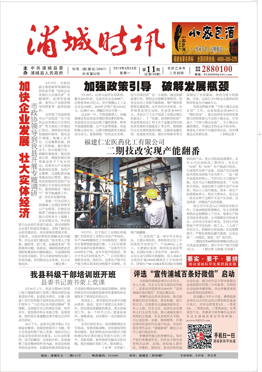 | 2015-03-24 16:23:50??來源:浦城新聞網(wǎng) 責(zé)任編輯:鄧忠衛(wèi) 我來說兩句 |