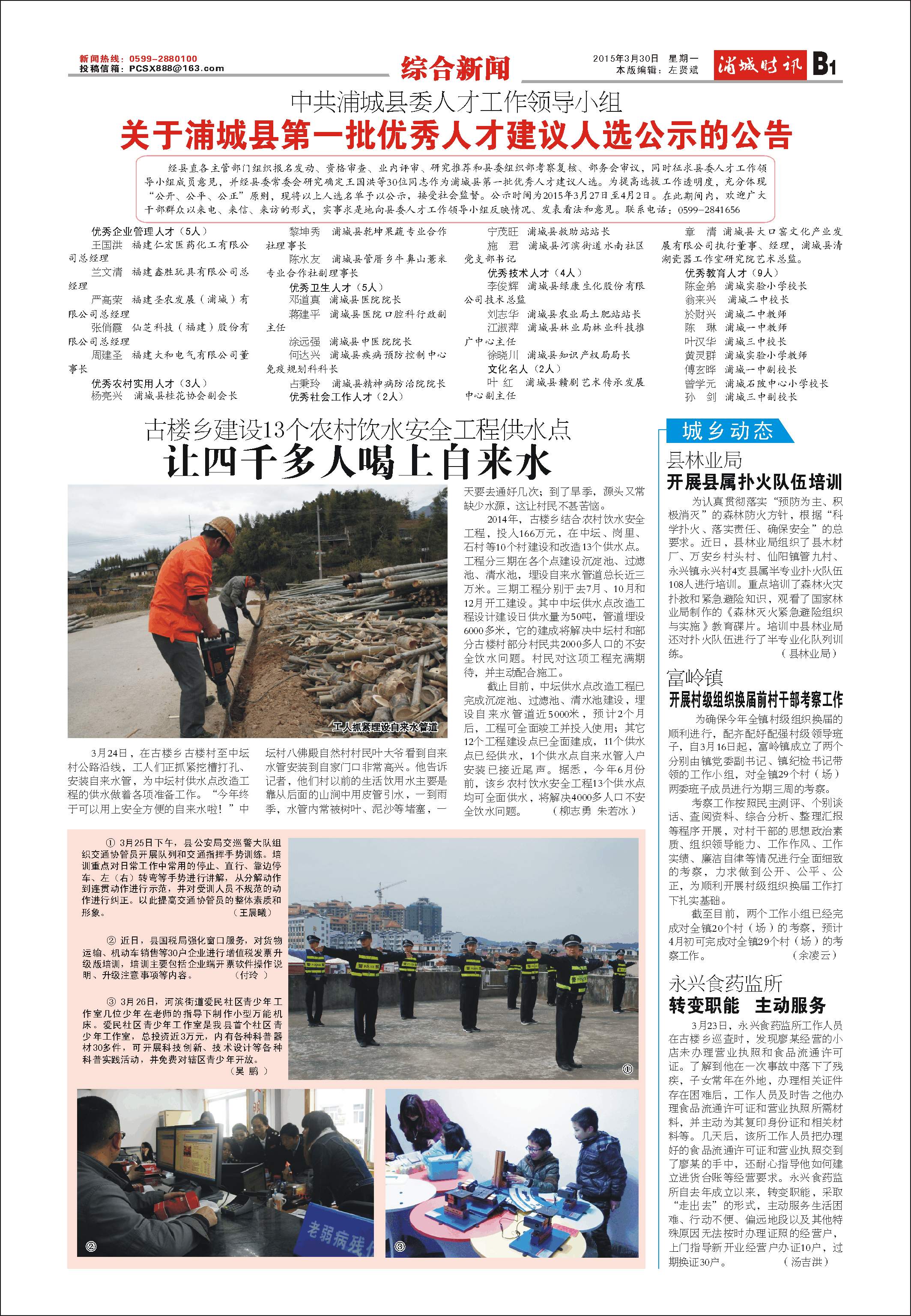 | 2015-04-01 10:29:04??來(lái)源:浦城新聞網(wǎng) 責(zé)任編輯:林張清 我來(lái)說(shuō)兩句 |