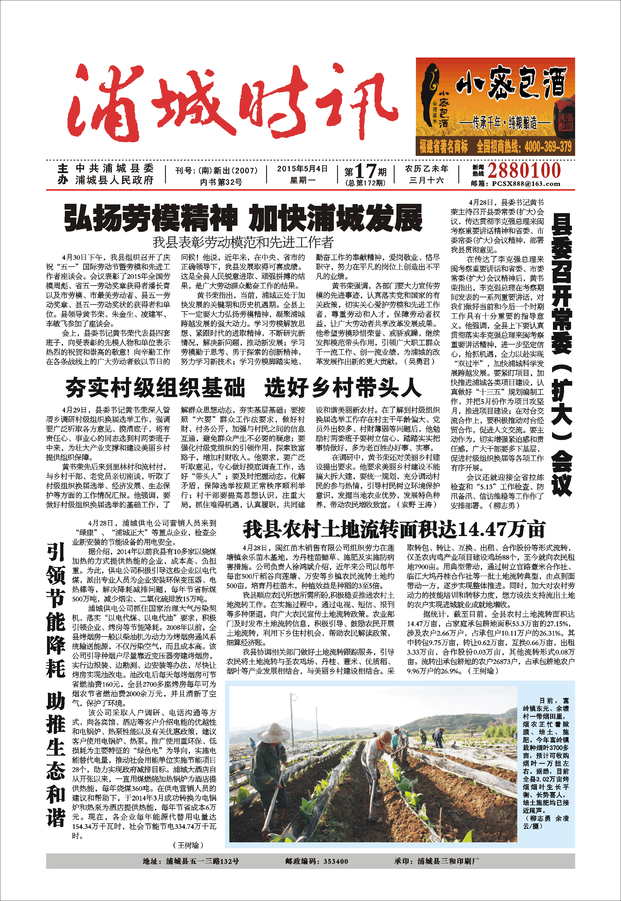 | 2015-05-04 14:43:57??來源:浦城新聞網 責任編輯:林張清 我來說兩句 |
