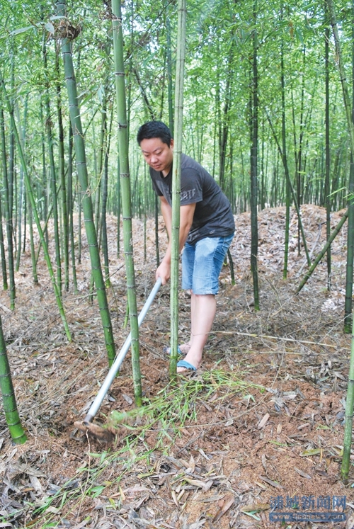 一場陣雨過后,一棵棵婀娜的雷竹在微風中搖曳,越發顯得青翠欲滴,生機勃勃。走進竹林,空氣清新,宛如一座綠色寶庫。6月2日,記者在石陂鎮岐山前村鴻運雷竹專業合作社雷竹種植基地看到,種植大戶楊金松正在給雷竹施肥、松土。 “今年是個豐收年,合作社150多畝雷竹,畝產鮮筍1000公斤,銷售額600多萬元。”見記者來訪,楊金松趕忙放下手中的活介紹道,雷竹可從11月份一直出筍到第二年4月份。前段時間剛采摘完,現在得趕緊追肥,爭取來年又是一個豐收年。 說起為何會種雷竹時,楊金松說,上世紀九十年代,父親從事竹子運輸行業,主要是把我縣的毛竹運到山東、河南等地搭建蔬菜大棚,可每次途徑浙江臨安時,看到當地竹農種植雷竹經濟效益非常可觀,他覺得這是一個新的致富門道,就有了轉行種植雷竹的想法。2003年,剛好縣農業局有種植雷竹項目,對種植戶在園地選址、種苗供應、栽培管理等環節提供技術和服務。機不可失,于是經過選址,父子倆在石陂鎮岐山前大坪種了80多畝雷竹,并成立鴻運雷竹專業合作社。據了解,雷竹又名早竹、早園竹,別名雷公竹,原產于浙江臨安等地,是一種優良的筍用竹種,生長期較快,具有出筍早、產量高、筍期長、筍味美、綠色生態等特點,第三年就可以見效,到第四、五年就進入豐產期。而且產量穩定,沒有大小年之分,經濟效益很好。 “今年雷竹筍采收旺季,我們有3部大貨車輪流發貨,每天拉2萬多公斤雷竹筍到浙江、上海等地。”楊金松說,今年雷竹筍采收旺季,每天要顧四十多人上山采收,采收的雷竹筍由合作社統一銷售,一般早上采收的竹筍當晚就能進入浙江、江蘇、上海等地市場。 “合作社采取‘統一提供竹苗,統一技術服務,統一產品銷售’的模式,組織社員農戶進行標準化生產。經過這些年的發展,合作社現有103人,年純收入近百萬元。今年我們打算在竹林裝上灌溉的水管、噴水器等,通過科學管理,提高竹筍產量。”楊金松指著竹林的水管說道,下一步他們打算擴大種植規模,使雷竹種植基地達到200多畝。(左賢斌 袁野) |