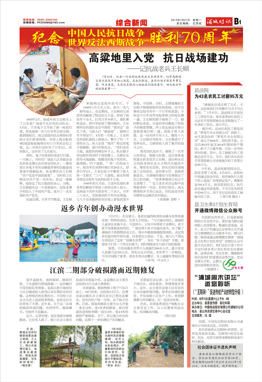 | 2015-07-27 16:33:17??來(lái)源:浦城新聞網(wǎng) 責(zé)任編輯:施柳清 我來(lái)說(shuō)兩句 |