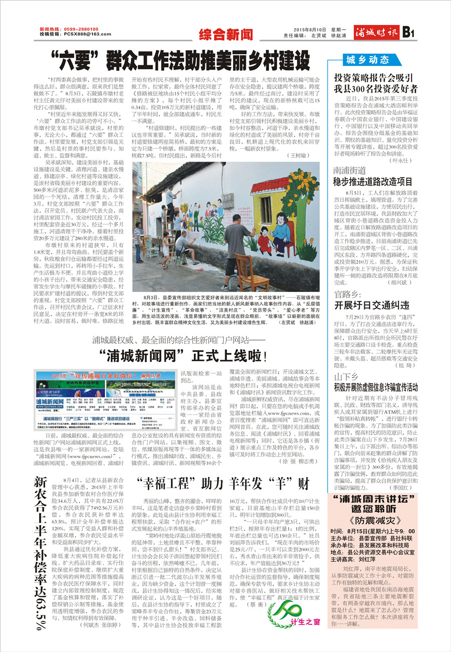 | 2015-08-10 09:23:02??來(lái)源:浦城新聞網(wǎng) 責(zé)任編輯:施柳清 我來(lái)說(shuō)兩句 |