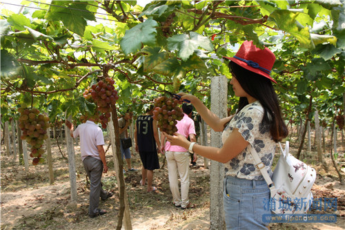 "這串提子又大又紅,看著真誘人!好甜!"8月7日,濠村鄉樟源村王生旺的紅提采摘園里一片熱鬧景象,游客爭相采摘中意的提子。 王生旺2014年看到許多地方興起水果采摘熱,感覺到這里面大有可為。便四處考察學習果樹栽培和果園的管理技術,回鄉發現樟源村禾垅電站旁的一片沙灘田地勢開闊,日照充足,水源干凈,適宜栽種美國紅提。于是他從村民手中流轉10畝少灘田,引種了800余株的美國紅提。經過1年的培育,提子園如今已是"藤蔓相連,蒙絡搖綴"。一串串的美國紅提已褪去青澀,漸露紫紅,長勢喜人。 "放心吃吧,這些提子從未灑過農藥,施的是農家肥,是無污染的綠色水果。"王生旺介紹說,8月下旬,將是提子的最佳采摘旺季。今年預計可采提子7500公斤左右,按市場行情,可收入6萬余元。 (徐趙浦 張依婷) |