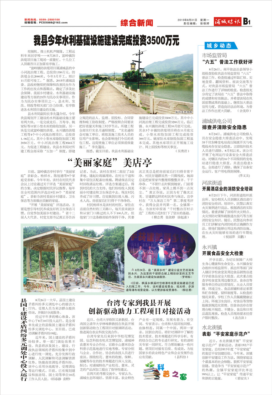 | 2015-08-31 16:13:22??來(lái)源:浦城新聞網(wǎng) 責(zé)任編輯:施柳清 我來(lái)說(shuō)兩句 |