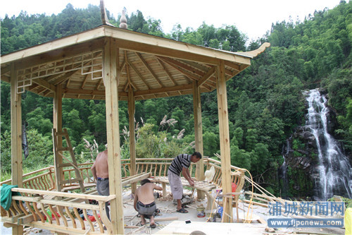 楓溪村岱根瀑布觀景設施建設已進入掃尾工作