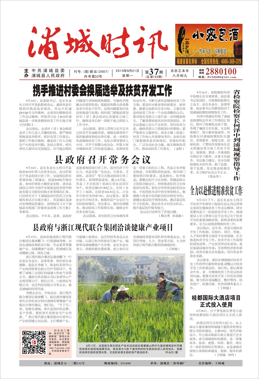 | 2015-09-25 14:10:19??來(lái)源:浦城新聞網(wǎng) 責(zé)任編輯: 我來(lái)說(shuō)兩句 |