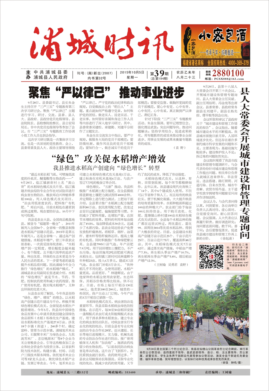 | 2015-10-08 16:36:51??來源:浦城新聞網 責任編輯: 我來說兩句 |