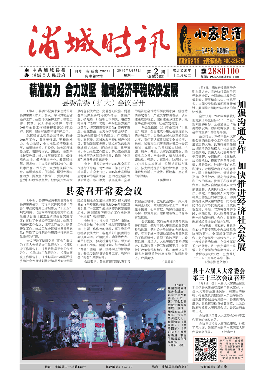 | 2016-01-11 14:12:10??來源: 責任編輯:浦城新聞網 我來說兩句 |