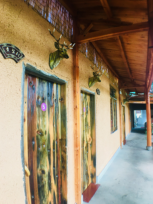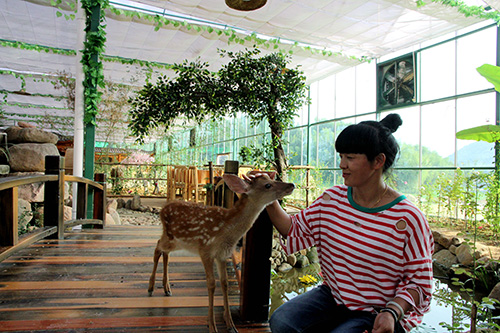 在竹鼠養殖場不遠的地方,筆者看見了正在打地洞的野兔。俗話說狡兔三窟,死守一窟,必有收獲。在徐石龍的指引下,我們來到了母兔繁育房,大大小小的兔子洞遍布在10平米的小房子里,不一會兒就看到不少母兔進進出出。 “我們正在打造旅游觀光項目,酒店餐飲設施已經修建完畢,目前正在進行人工馴化梅花鹿,讓它漸漸適應與人類生活?!毙焓堈f,為了吸引更多游客前來游玩,他們馴化了剛出生不久的梅花鹿,在與人類進行親密接觸下,小梅花鹿漸漸不怕生了起來。