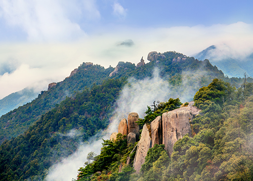匡山-將軍出征石 上午浦城出發(fā)——富嶺鎮(zhèn)大水口鳥(niǎo)巢度假村——匡山國(guó)家森林公園(午餐);下午匡山國(guó)家森林公園——管厝青草洋森林人家——茶坪溯息谷——慶元紅色旅游村(晚餐),返程夜游丹桂城市廣場(chǎng)、江濱親水慢道、文化一條街。 ? 匡山國(guó)家森林公園: 匡山因山形“四周奮起、而中窳下,形似筐廬”而得名。2009年申報(bào)為國(guó)家森林公園,公園總面積達(dá)2014.27公頃,森林覆蓋率92.6%,分布著成片的香榧群落、黃山松群落、青錢(qián)柳群落。公園內(nèi)群山疊翠,怪石嶙峋,有“將軍出征”、“伯溫遺墨”、“群蛙聚會(huì)”、“石蠟燭”、“千年石龜”,“風(fēng)動(dòng)石”、“雙門(mén)井”,“九獅戲水”、“碧湖羞女”等諸多奇石景觀。 青草洋休閑旅游區(qū): 青草洋休閑旅游區(qū)距城關(guān)37公里。景區(qū)面積2萬(wàn)余畝,其中國(guó)家級(jí)生態(tài)公益林7302畝,森林覆蓋率93%。山勢(shì)險(xiǎn)峻,多斷壁峽谷、險(xiǎn)灘。得天獨(dú)厚的原始次生林,形成了該景區(qū)豐富的動(dòng)植物資源和獨(dú)特的景觀,成為集山、水、林、佛、道為一體的綜合性休閑勝地。 ? 線(xiàn)路三:???? 九石渡 烏龍山生態(tài)農(nóng)業(yè)觀光園