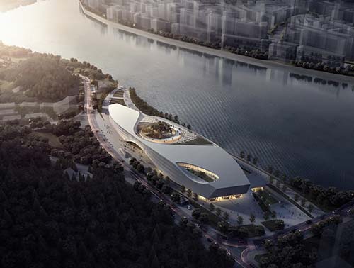 會議中心全貌 ? 能成為首屆聯合國世界地理信息大會永久會址總設計師,吳震陵坦言,這背后有太多的壓力,太多的故事。 ?