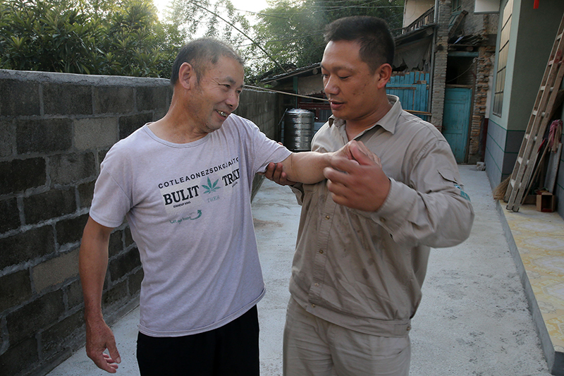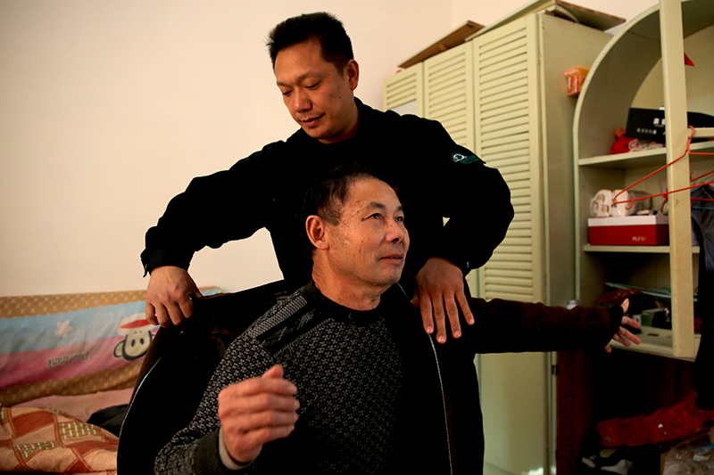 吳華輝(右)為工友做康復訓練 ? 呂金生是原來是濠村營業所的一名員工,以前有個幸福的家庭,但從2012年開始,不幸接踵而至。先是獨生兒子因病去世,兒媳婦身患紅斑狼瘡頑疾長期吃藥,需要有人照顧。2016年4月1日,呂金生因意外車禍造成顱底骨折,生活不能自理。僅隔兩個月,57歲老伴何坤鳳又查出胃癌晚期。就這樣,他們夫妻兩人雙雙躺在病床,成了無人照顧之人。 面對這樣不幸的一個家庭,吳華輝沒有猶豫,主動承擔起了照顧呂金生夫妻倆人的一切,他說:“呂金生是我的同事、工友,我總不能眼睜睜看著他們躺在床上無依無靠?!?/span> 當時呂金生神志不清,癱瘓在床,大小便失禁,生活不能自理。吳華輝每天喂飯、喂藥、洗臉、擦澡、翻身、換洗衣物,干起保姆全護理的活。一連幾天下來,他累得眼冒金星,腰酸背疼。但呂金生的病情基本沒有好轉,要想在短時間內恢復健康是不可能的事,需要長時間的精心護理。為此,吳華輝干脆請了長假,在醫院里專心照顧呂金生。整整5個月后,2016年9月,在吳華輝的悉心照顧下,呂金生開始有了知覺,除了面癱嚴重外,勉強能下床走動。為了節省費用,吳華輝幫助呂金生辦理了出院手續,搬到家里治療。每天,當地衛生院的醫生護士到家里為呂金生看病、治療,他就主動向醫生請教學習有益于呂金生康復操的動作要領,一遍遍的自學,一遍遍的練習。 ?