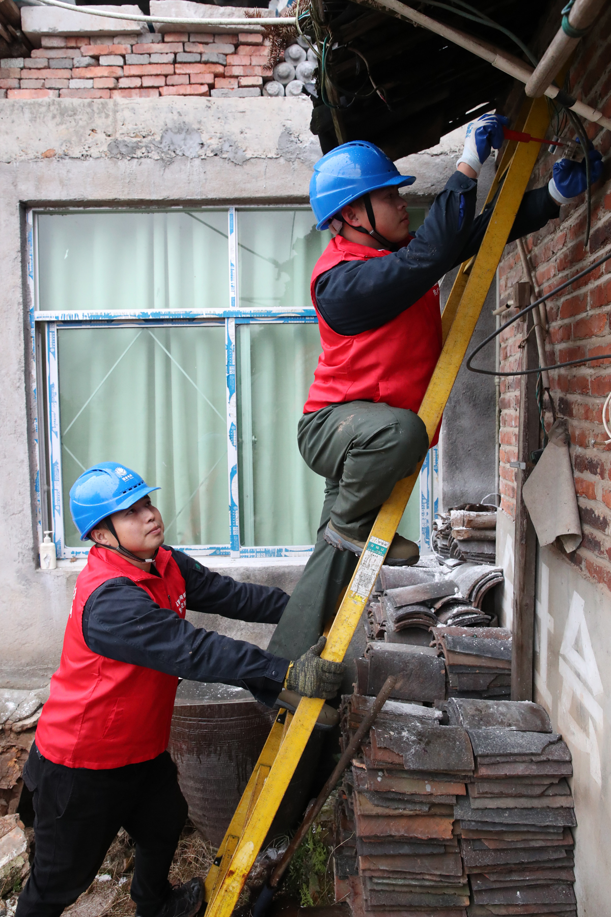 12月20日,浦城縣供電公司共產黨員服務隊為獨居老人劉傳岳在密林里安裝線路。李義友 攝 12月20日上午,一位不愿透露名字的浦城交運公司好心人羅先生經過劉傳岳家里,了解到這個情況,馬上幫助打電話給浦城縣供電公司城區配電搶修班。接到電話的顏順峰立即帶著班員去現場勘察。
