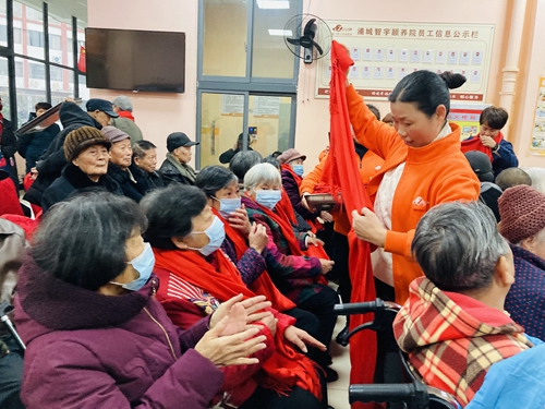 志愿者給老人送上紅色圍巾 余恒毅 攝 隨后,縣教育工會樂團的志愿者們傾情演繹民族樂曲《喜洋洋》《步步高》《金蛇狂舞》,舞蹈《紅棗樹》《那拉擔的養蜂女》等,樂曲抑揚頓挫,激情滿懷,舞蹈婀娜多姿,神形兼備,令在場的老人們陶醉不已。越劇表演字正腔圓,服飾清麗,情節引人入勝;男女聲獨唱、合唱,歌聲或高亢嘹亮,或柔美抒情,歌聲熟悉而悠揚。一首《智宇頤養我的家》,讓老人們感同身受,頻頻點頭;大合唱《我的祖國》《歌唱祖國》將演出的氣氛帶到高潮,老人們掌聲雷動,經久不息。 浦城智宇頤養院院長朱紅梅說:“我們這場活動的初衷是為了進一步推進我院愛老、敬老的睦鄰文化氣氛,大力提倡尊老愛老風尚,豐富老年人的文化生活,所以我們今天非常榮幸邀請到了浦城縣教育工會樂團的文藝志愿者們,和我們一起走進我們智宇頤養院為老人送上了一場精彩的視覺盛宴,讓老人們感受到冬日的暖陽,為老人送去了新年的祝福。”(余恒毅) |