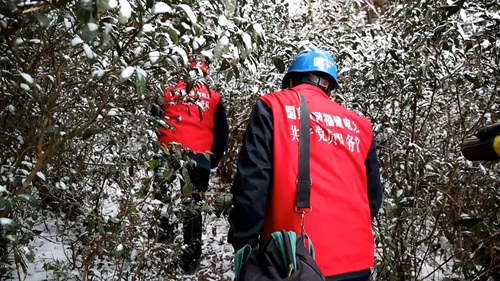 服務隊徒步登山巡視線路 李義友 攝 12月27日上午,浦城縣供電公司九牧供電所組織了特巡隊,對10千伏黃畢線開展雪后特巡。 26號晚8點起,浦城九牧、官路、永興等多個鄉鎮迎來了今年冬天的第一場雪。縣供電公司立即按照防御雨雪冰凍災害工作要求,開展特巡特護保電工作。11支共產黨員服務隊伍徒步登山,對影響線路運行的樹木進行清理,并對村民冬季安全用電知識進行宣講和發放宣傳單。由于前期措施得力,落實到位,此次降雪沒有對供電線路造成影響。