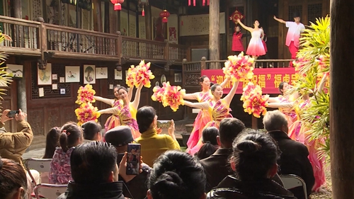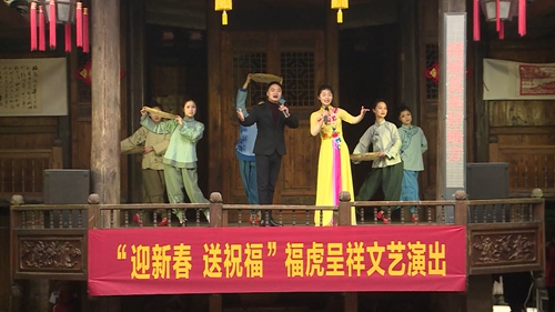 現(xiàn)場演出。余恒毅 攝 為貫徹落實省委、省政府關(guān)于加快打造福建文化標識體系、打響福建“福”文化品牌的決策部署,1月19日,浦城縣贛劇藝術(shù)傳承發(fā)展中心在三山會館舉辦了“迎新春 送祝福”福虎文藝演出。 會館內(nèi),浦城縣贛劇藝術(shù)傳承發(fā)展中心為到場的觀眾們獻上了贛劇表演唱《虎躍龍祥迎春風(fēng)》、舞蹈《迎春接福》、獨唱《我伴梅花報春來》等節(jié)目,引來觀眾陣陣掌聲與喝彩,演出在舞蹈《美好新時代》中落下帷幕。
