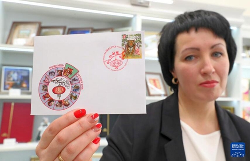 1月18日,在白俄羅斯首都明斯克,工作人員展示虎年生肖郵票及首日封。新華社發(fā)(任科夫攝) 新華社明斯克1月18日電(記者魯金博)白俄羅斯18日發(fā)行中國農(nóng)歷虎年生肖郵票,這是白俄羅斯連續(xù)第三年發(fā)行中國農(nóng)歷生肖郵票。 生肖郵票由白俄羅斯通信與信息化部和白俄羅斯國立大學孔子學院合作發(fā)行。郵票發(fā)行量為3.6萬枚,票面正中為虎的圖案,右下方有中文“虎”和白俄羅斯文“虎年”字樣。白俄羅斯郵政部門當天還推出虎年首日封和紀念戳,消費者購買首日封可享受免費郵寄服務(wù)。