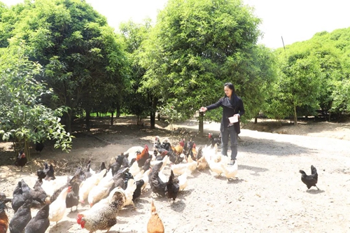 唐乾英在給雞群喂食 2015年,她在其舅舅的影響下,她走上了養殖的道路,并在瓦鋪村“安家落戶”。剛到村里,唐乾英遇到了很多困難,陌生的環境加上語言不通,造成了很多工作滯后,在農場建造與外國雞適應本地環境上也是頻頻受挫。可她并沒有輕言放棄,而是頂住壓力,迎難而上,最終在養殖事業上一路順遂。 “目前,我這里共散養了4000多只土雞,有珍珠雞、海藍灰、綠殼蛋烏雞、貴妃雞和清遠麻雞等品種。”唐乾英指著眼前這群跳躍在山間的“小精靈”,充滿感慨地向筆者說起了她的創業故事。 為了讓這群外國雞住的“巴適”,唐乾英在養殖基地內建設了8個雞舍、2個保溫房,且每間雞舍都接通了水電,設有恒溫設施,甚至還針對不同品種的雞,播放不同風格的音樂。此外,她還通過互聯網結識了許多外地有經驗的養殖戶,和他們交流經驗,盡快讓這些外來品種“落地生根”“開花結果”。