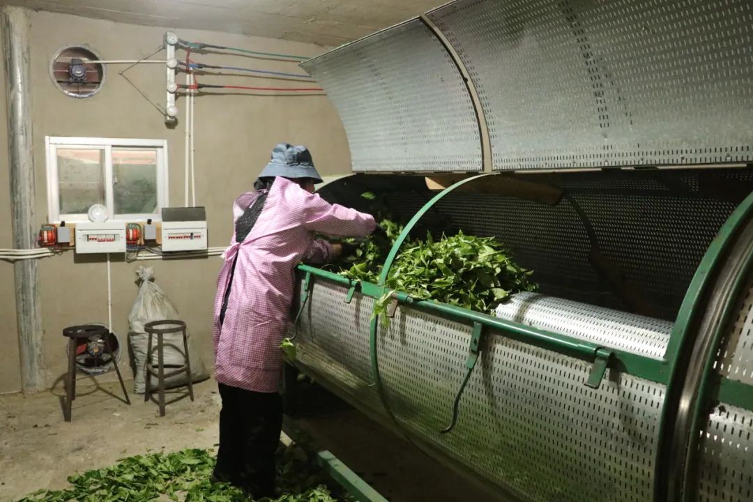 工人把茶葉裝進風干桶清除水分 “上云村處于平均海拔900米以上的高山區,生態環境好,好山好水才能出好茶。我們這邊的土壤,經專業機構多次檢測,測出富含有硒元素,硒元素是我們人體必須的十大微量元素之一。高山茶加上富含硒,品質就更優?!闭谏显拼宀枞~有限公司指導工人們制作新茶的浦城縣科技特派員魏翱介紹。只見殺青、揉捻、烘焙、發酵……整個環節配合緊湊,有條不紊。在茶葉加工現場,記者也全程了解了高山茶及其制茶工序,品味一番茶香,高山茶具有香、甜、不苦澀的特色口味。