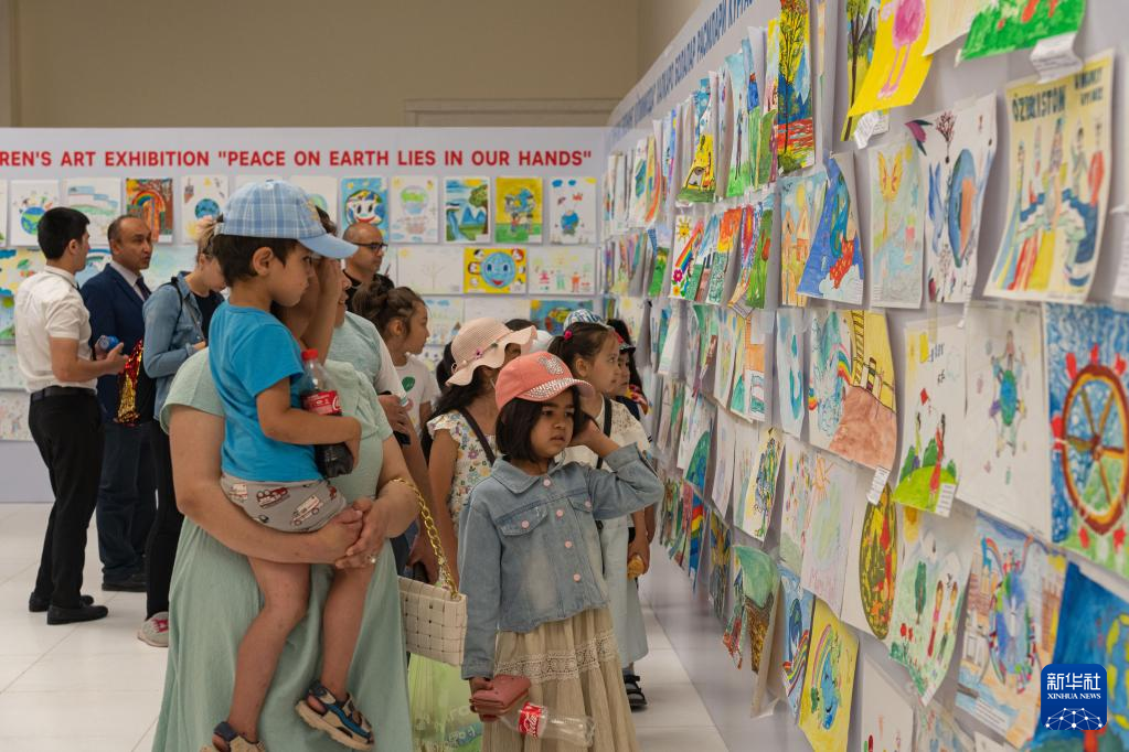 5月30日,人們在烏茲別克斯坦首都塔什干觀看“六一”兒童繪畫展。 當日,以“地球和平在我們手中”為主題的“六一”兒童繪畫展在烏茲別克斯坦首都塔什干的青年創意宮開幕。此次畫展征集展出烏茲別克斯坦兒童的畫作百多幅,開幕當天吸引眾多民眾前來參觀。 新華社記者 蔡國棟 攝