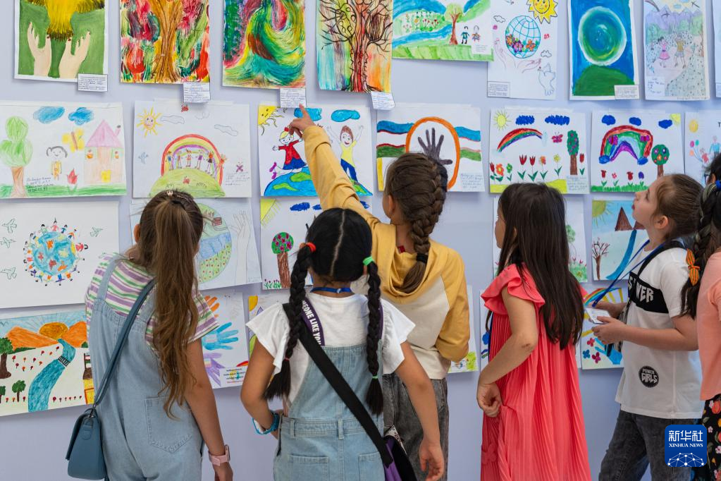 5月30日,小朋友在烏茲別克斯坦首都塔什干觀看“六一”兒童繪畫展。 當日,以“地球和平在我們手中”為主題的“六一”兒童繪畫展在烏茲別克斯坦首都塔什干的青年創意宮開幕。此次畫展征集展出烏茲別克斯坦兒童的畫作百余幅,開幕當天吸引眾多民眾前來參觀。 新華社記者 蔡國棟 攝