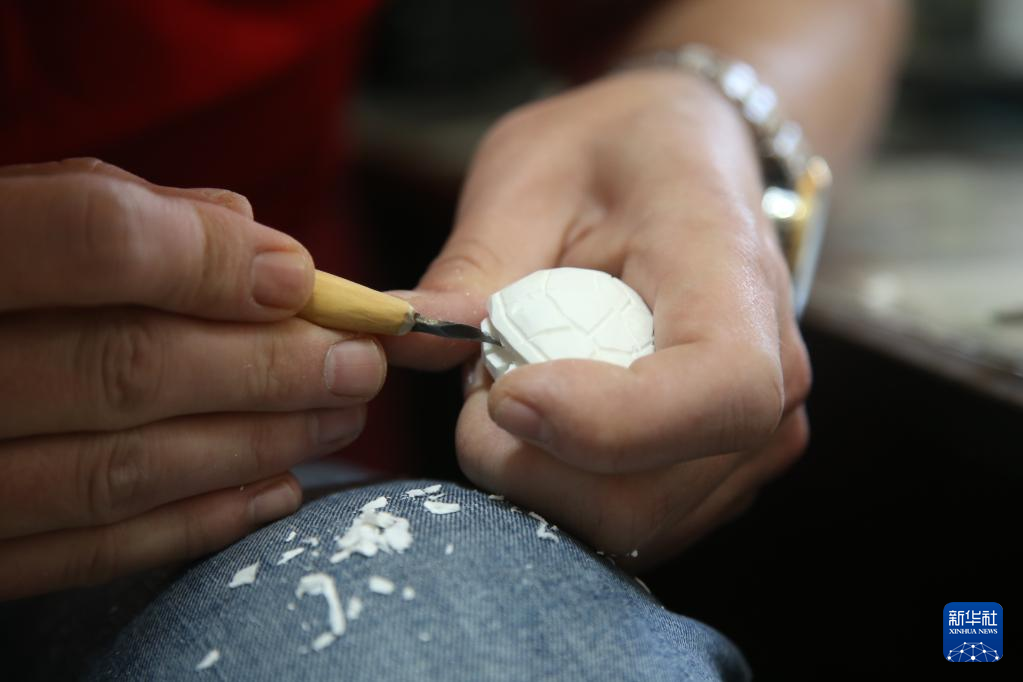 5月26日,在土耳其埃斯基謝希爾,工匠雕刻海泡石作品。 土耳其中部老城埃斯基謝希爾以擁有高品質的海泡石而聞名。海泡石的主要成分為硅酸鎂,埃斯基謝希爾獨特的溫泉和沙質土壤培育出質量上乘的海泡石。這些濕潤之后就會變軟的石頭非常適于雕刻。 新華社記者 李振北 攝