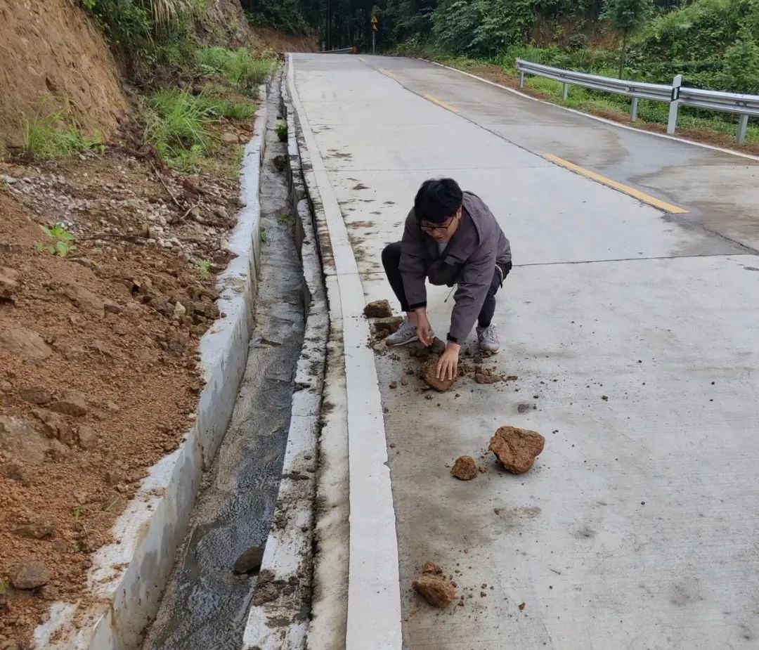 江志成清理道路落石 這位在妻子眼中略顯“憨憨”的小伙子,在成為基層黨群工作者之前,曾在武警某消防大隊服役五年,參與過爆炸事件救援和特大洪災搶險救災等行動,具有豐富的搶險救災經驗。他見過洪水的兇猛和生命的脆弱,更深知防汛抗災責任重于泰山。古樓鄉上云村是偏遠高山村,海拔800多米,道路蜿蜒崎嶇,梅雨季節,云霧繚繞,道路濕滑。入汛以來,為了保證群眾生命財產安全,他與村“兩委”干部一同補充購買應急物資,定期到高陡邊坡、老舊木結構房屋、曾發生溜方滑坡路段巡查,在易發生事故路段設置警示標識,并及時將高陡邊坡群眾送往投靠親友,或轉移至村部安置。每天晚飯過后,陪伴轉移出來的群眾拉家常成為了江志成的“必修課”。“人雖然轉移出來了,但心還是牽掛著家的。”江志成說,通過和他們聊天,既能了解群眾的需求,也能把平時巡查的情況和他們說說,讓他們安心避災。 “天黑路滑,我去巡查吧,你們就不要去了。”入夜后,江志成又撐起雨傘,打著手電,準備一戶戶巡查高陡邊坡轉移群眾是否有回流,檢查土木結構房屋是否出現裂痕和滲水情況,查看各路段是否有落石、滑坡等現象……“巡查多一分細致,群眾就少一分危險。村支書和支委年紀都比較大了,我年輕,又是共產黨員,多走走沒關系。”說完,江志成的身影漸漸消失在朦朧的夜幕之中。(邱春靜 練雅男) |