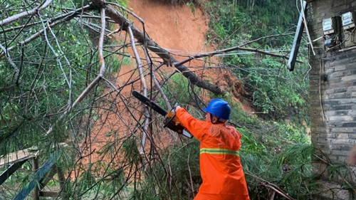 6月18日上午11時40分左右,連日來的強降雨導致濠村鄉北坑村的一處山體發生滑坡,倒塌的樹木壓倒在高壓線上導致北坑村停電。 濠村鄉電力應急工作人員接到鄉防汛抗旱指揮部通知后,第一時間趕往現場勘查用電鋸將倒在高壓線上的樹木全部鋸斷,并對松動的電桿進行加固,經過三個多小時,緊急搶修干線路恢復正常通電。
