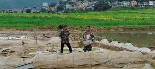 清理塌方 該村另一處有路段塌方,浦城縣應急救援第六方陣(交通部門)及時到現場處理,該村黨支部書記王新濤現場協調指揮,不一會兒,道路及時得到疏通,道路恢復正常交通。“昨天的大水淹沒了一些田,鎮里農技站及時給村民補發了秧苗,村民回去補種,爭取把損失降低到最小?!蓖跣聺嬖V記者,該村總體財產損失是比較小的。 “在這次洪災來之前,我們就做了充分的準備,提前轉移了人員和重要財產,做到了沒有人員傷亡,把財產損失減少到最小?!备粠X鎮黨委副書記、鎮長伍麗穎說。 下一步,該鎮將繼續加強開展災后的安全隱患排查以及消殺工作,做好道路巡查,房屋排查,分類修繕重建,嚴防次生災害的發生。 濠村鄉 連續的強降雨,導致濠村鄉大面積農作物被淹,針對今年受災水淹情況,濠村鄉科技特派員吳火金及時到現場指導種植戶排除田間積水、追加肥料、防治病蟲害等,并為今后一段時間的田間管理和病蟲害防治提出了指導性意見,提醒農戶什么時間用藥、什么時候補施肥料,跟他們進行詳細解答。