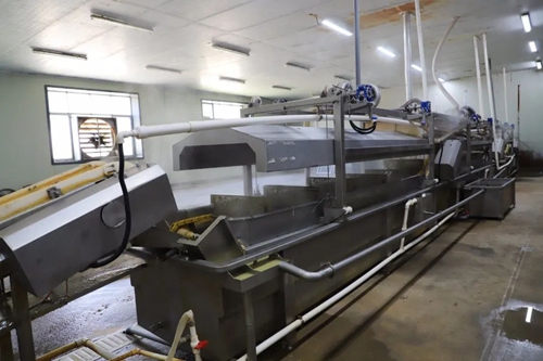 剖腸、燙腸、冷卻、包裝……6月29日,浦城縣萬(wàn)安鄉(xiāng)的雞腸加工廠內(nèi),3條雞腸加工生產(chǎn)線上的工人們熟練又有序地進(jìn)行雞腸半加工。