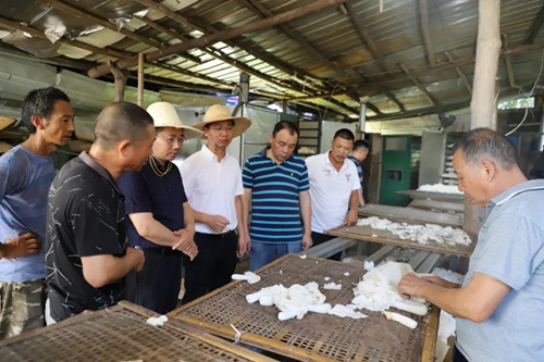 在烤房察看烘烤竹蓀過程 “今天我?guī)Я藥孜煌乱黄疬^來,他們在竹蓀栽培、菌種制作等方面有不同專長,希望我們的指導和建議對濠村鄉(xiāng)的竹蓀產(chǎn)業(yè)發(fā)展有所幫助。”陳美元說,浦城是革命老區(qū),希望竹蓀產(chǎn)業(yè)為老區(qū)的鄉(xiāng)村振興添磚加瓦。(王海麗 何周超 徐孝彬) |
