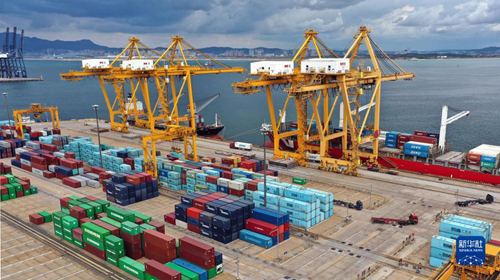 在遼寧省大連市遼寧港口集團大連港集裝箱碼頭,貨輪在裝卸集裝箱(2020年9月24日攝,無人機照片)。新華社記者 姚劍鋒 攝 2021年,遼寧石化行業營業收入首次邁入萬億大關,乙烯、PX、PTA產能均位居全國首位。遼寧有“油頭”少“化尾”的產能結構正在改變。不僅如此,川藏鐵路極寒條件鋼軌、超大型集裝箱船止裂鋼等一批新材料也接連問世。在石化、冶金、建材等原材料及深加工行業,補鏈、延鏈、強鏈工作全面推開。