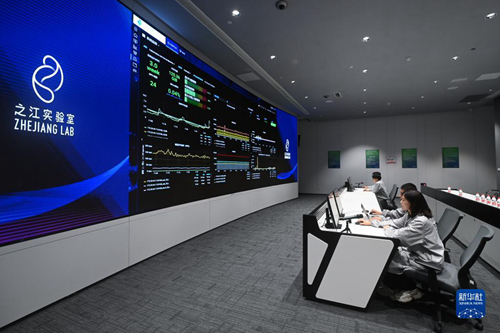 在之江實驗室計算與數據中心,工程師們通過“之江云”系統監測服務器集群的運行狀態(2022年6月23日攝)。新華社記者 黃宗治 攝 目前,浙江數字經濟高新技術企業突破1.1萬家,國家實驗室、大科學裝置取得零突破,涌現類腦計算芯片等一批創新成果,數字經濟正為浙江發展培育新動力。 讓綠色成為發展最動人色彩