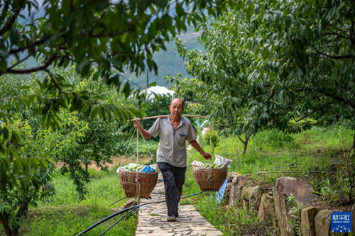 在巫山縣曲尺鄉(xiāng)柑園村,村民張興前在挑運脆李(2022年7月2日攝)。新華社記者 黃偉 攝 在長江之畔的巫山縣曲尺鄉(xiāng),一棟棟巴渝特色農(nóng)房掩映在郁郁蔥蔥的果樹間。“幾年前村民主要靠外出務工掙錢,近年來通過發(fā)展脆李產(chǎn)業(yè)和鄉(xiāng)村旅游富了起來。種脆李、開民宿,我家每年收入四五十萬元。”曲尺鄉(xiāng)柑元村村民彭斌說起生活新變化,開心地笑了。