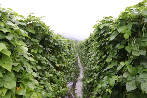 村民管護四季豆幼苗 經過兩年的摸索實踐,2016年底,他從當地銀行貸款20萬元,建起現代化蔬菜大棚,走上規模化種植之路。 “過去,發展農業靠天吃飯,如今,我們更愿意用科學的方法解決種植中遇到的難題。”鄭鳳仙說,在科技特派員的“一對一”幫扶下,他當起了新型職業農民,通過努力不僅還清了貸款,土地流轉規模不斷擴大,還注冊了自己的品牌和商標——“員盤”牌生鮮蔬菜商標。320畝的流轉土地,其中120畝采取“豆+稻”輪作的方法,先種四季豆后種水稻,利用四季豆根瘤菌固氮的特性與豆藤還田,提高土地有機質含量,減少氮肥的使用,達到保護土壤的目的。同時,還種植大棚蔬菜,進行農產品深加工,大大提高了蔬菜經濟效益和社會影響力。 “2017年底,鄭鳳仙與浙江客商簽訂蔬菜買賣合同,產出的四季豆,對方以每斤2元的價格進行收購。”鄭鳳仙算了這樣一筆“田頭賬”。水稻稻種換成適合輪作的高產新品種后,畝產600公斤以上,畝產四季豆約3000斤,訂購價每斤2元,刨去每畝人力成本最多2000元,種子等成本最多2000元,每畝凈賺至少2000元,加上煙葉、大棚蔬菜和輪種的水稻,預計每年能賺100多萬元……訂單農業的運作模式,讓鄭鳳仙沒有了銷售的后顧之憂,他把訂單分給村民一起種植,帶動村民共同致富。 “四季豆采摘旺季,一天大概要雇100多人,一年支付村民工資約50萬元。”如今,鄭鳳仙的農場成了員盤及周邊村民就近務工的首選,可為周邊村民提供夏秋兩季做工需求,貧困家庭成員來基地也會優先聘用。“因為疫情沒有出去打工,本來以為在農村賺不到錢,生活會很艱難,沒想到在樂禾家庭農場就掙了4萬多元。”正在采摘辣椒的年輕媽媽小李笑著說,在家還能照顧老人和孩子,比出去打工強多了!