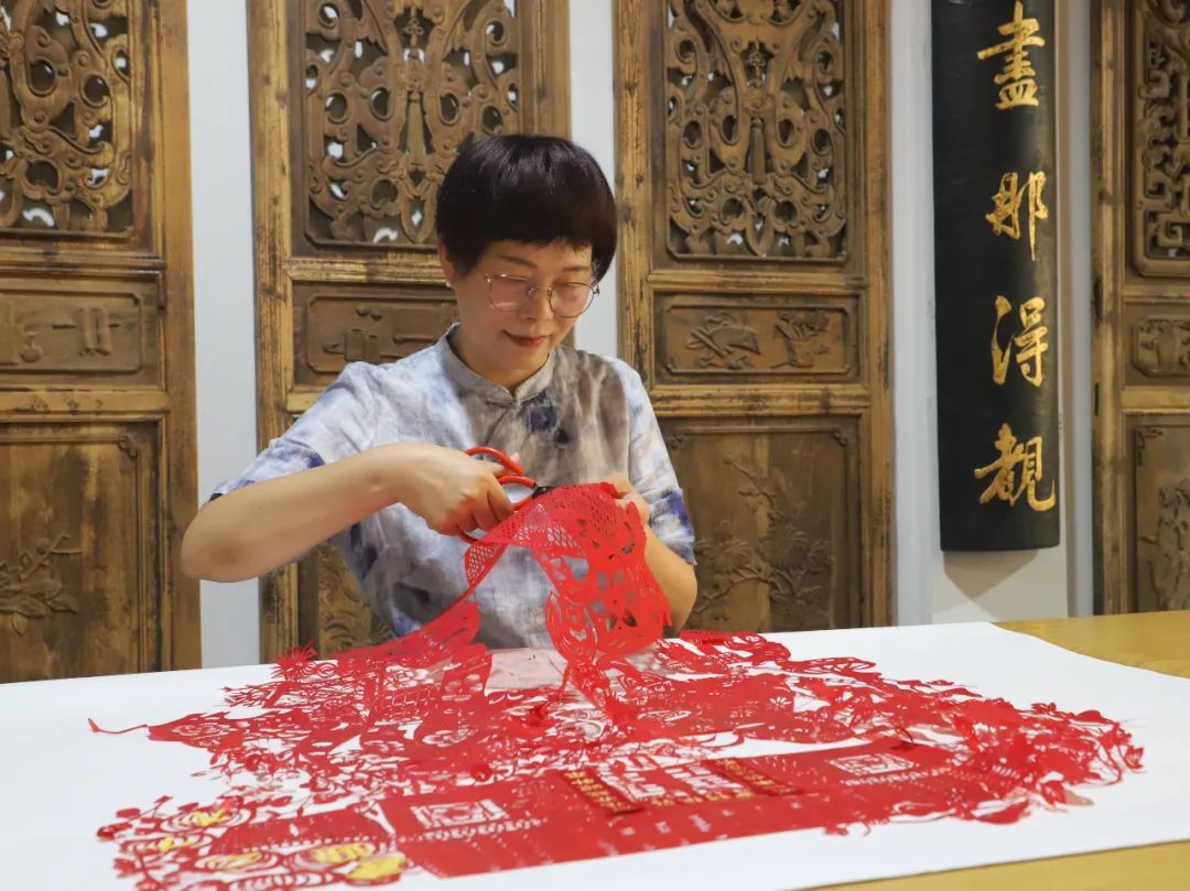 “浦城剪紙是國家級非物質(zhì)文化遺產(chǎn),作為非遺傳承人,我想用手中的剪刀和紅紙,記錄家鄉(xiāng)日新月異的變化,表達對祖國繁榮昌盛、國泰民安的美好祝福。”9月28日,在浦城縣剪花嫂剪紙坊,浦城剪紙省級非遺傳承人張薇正在剪制一幅“喜迎黨的二十大”主題剪紙,作品中,農(nóng)家小院碩果累累,青年人正辛勤地勞作,老人們悠閑地下棋逗鳥,孩子們自由自在地玩耍,處處洋溢著豐收的喜悅。 浦城剪紙具有“字中有畫,畫中有字,以字組畫”的特點,且圖必有意,意必吉祥,充滿了對自然、對生命等一切美好事物的歌頌和追求。據(jù)悉,剪紙藝術(shù)自西晉時期傳入浦城,經(jīng)千年融合與傳承發(fā)展,形成了南北兼容、地域特色鮮明的浦城剪紙藝術(shù)風(fēng)格,作為“美的使者”融入浦城人的生活,在一代代“剪花嫂”的傳承中,展現(xiàn)出了強大的藝術(shù)生命力。2008年,浦城縣被文化部命名為中國民間文化藝術(shù)(剪紙)之鄉(xiāng);2014年,浦城剪紙被列入國家級非物質(zhì)文化遺產(chǎn)項目名錄。