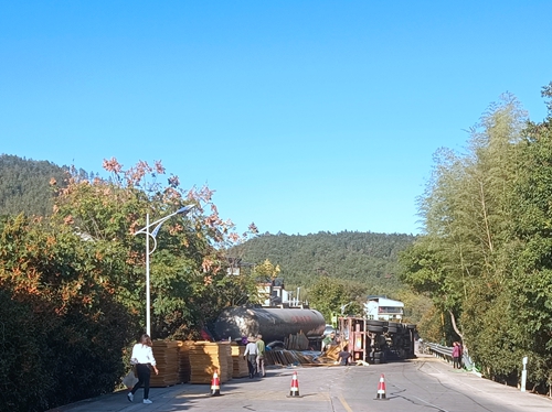浦城公路分中心及時處置車輛事故漏灑保暢通
