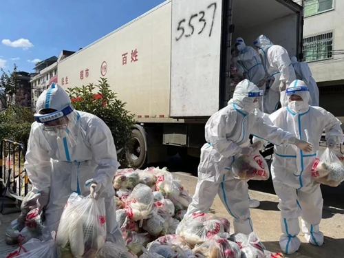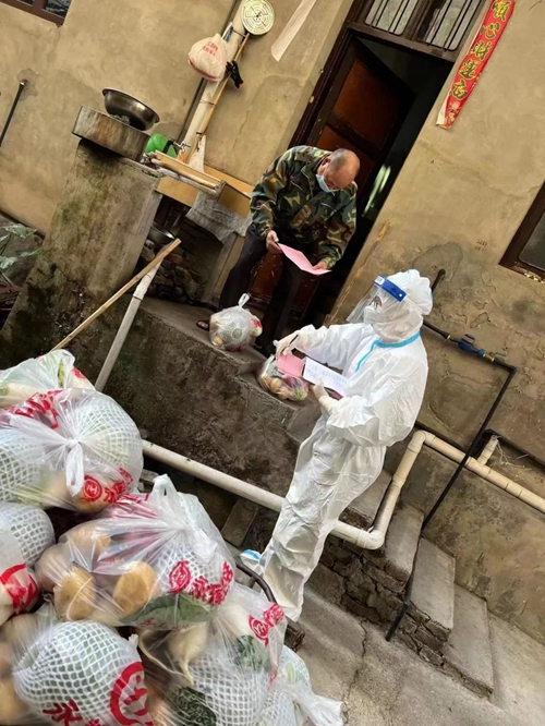 ▲貼心服務受好評 有些隔離住戶家里 有養貓、養雞、養豬的 家里的牲畜也需要 “管家們”幫忙照看一下