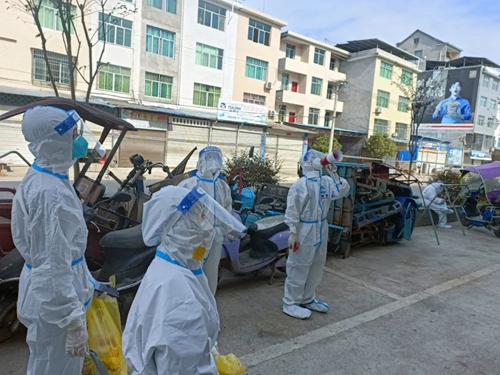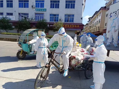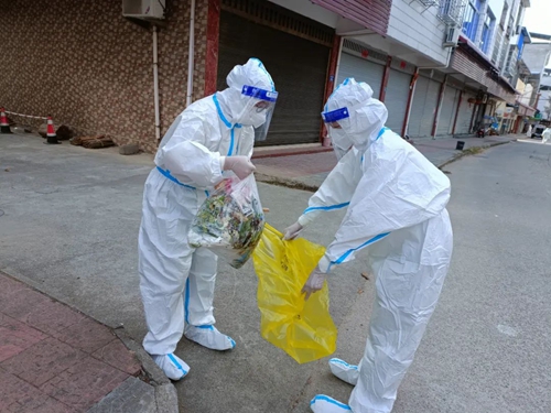 ▲上門收垃圾 封控11單元志愿者吳敏軍告訴我們 10月29日,為片區配送物資時 他蹬上了久違的人力小三輪 但穿著防護服大汗淋漓的樣子 還是頭一遭 由于一些區域通行不便 不得不用雙腿走完這“最后100米” 盡管如此他沒有放慢腳步 他說 一戶村民收到了物資后 遠遠地給他豎起大拇指 一身的疲憊突然間一掃而空……