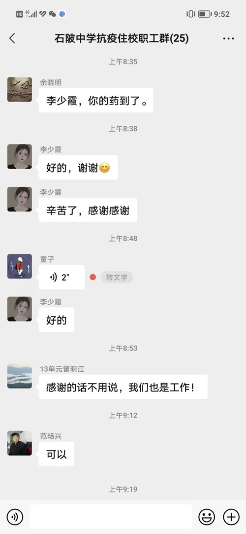 疫情面前,兵貴神速 10月26日 石陂鎮封控9單元志愿者們剛一進駐 便配合網格員馬不停蹄地將該區域走了個遍 挨家挨戶摸排信息 上門做核酸 第一時間掌握了該區域村民的相關情況 建立起了微信群 24小時在線 對村民的詢問和需求做到 “有問必有答,事事有回應” 為村民生活保駕護航