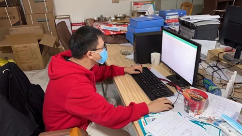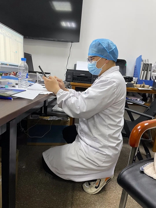 深夜,盧劍軍還在辦公室核對(duì)數(shù)據(jù) 盧劍軍作為一名預(yù)備黨員、PCR實(shí)驗(yàn)室負(fù)責(zé)人,他吃住在單位,連續(xù)72小時(shí)未眠未休,之后每天只睡兩三個(gè)小時(shí),累了就瞇一會(huì)兒,打個(gè)盹,餓了就吃泡面?;加懈哐獕旱乃麕状斡X(jué)得身體不適,偷偷服下降壓藥繼續(xù)工作,堅(jiān)持帶領(lǐng)他的檢驗(yàn)團(tuán)隊(duì)認(rèn)真對(duì)待每一份樣本,為疫情防控提供最真實(shí)可靠的檢驗(yàn)報(bào)告,當(dāng)天任務(wù)完成后他拖著疲憊的身軀又開(kāi)啟新一天的忙碌工作。 “我必須以共產(chǎn)黨員的標(biāo)準(zhǔn)要求自己,只有我沖在前線(xiàn),我們的團(tuán)隊(duì)才能往前沖、不畏難”。在盧劍軍的帶領(lǐng)下,PCR實(shí)驗(yàn)室工作人員晝夜不歇、爭(zhēng)分奪秒,全力以赴為抗疫“排雷”,在平凡崗位上貢獻(xiàn)自己的力量。 故事二 只爭(zhēng)朝夕“流調(diào)人” 10月31日晚上,協(xié)助完成浦城縣古樓鄉(xiāng)大路村區(qū)域全員核酸檢測(cè)工作的村黨群工作者周?chē)?guó)強(qiáng)接到流調(diào)數(shù)據(jù)核查工作,“你好,打擾您休息了,我是浦城縣疫情防控流調(diào)員,請(qǐng)問(wèn)您近期是否有去過(guò)石陂、濠村等地……”流調(diào)數(shù)據(jù)繁多、處理時(shí)間緊,為確保當(dāng)日數(shù)據(jù)清零,有時(shí)直至凌晨,辦公室依然燈火通明,電話(huà)聲、談話(huà)聲不絕于耳。 周?chē)?guó)強(qiáng)說(shuō):“有時(shí)候?yàn)榈谝粫r(shí)間核查信息,半夜給涉疫人員打電話(huà),已經(jīng)做好群眾拒絕、抱怨的心理準(zhǔn)備,但是大家都很配合工作,最后還十分關(guān)心我們,一直表示感謝,每次聽(tīng)到這些,再苦再累也會(huì)覺(jué)得是值得的。”