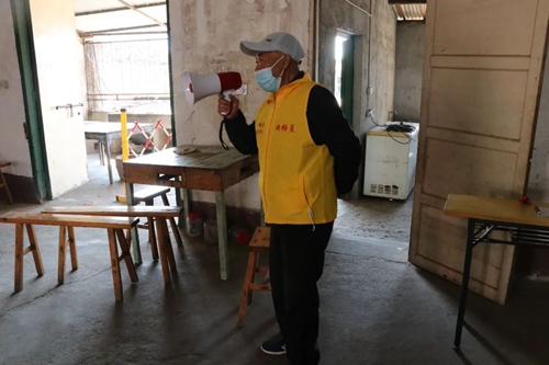 帶著小喇叭走街串巷宣傳疫情政策 在完成本職教育工作的同時(shí),他起早貪黑,配合南浦街道縣農(nóng)機(jī)站核酸采樣點(diǎn)完成全員核酸檢測、維持現(xiàn)場秩序,引導(dǎo)居民排隊(duì)、上門核酸采樣、宣講疫情政策等工作。他始終以一位老大哥的形象跟隨采樣隊(duì)伍一起堅(jiān)守崗位,跟醫(yī)護(hù)人員一起從天亮忙到天黑,盡職盡責(zé),從不喊累,以連日的堅(jiān)守和實(shí)際行動(dòng)詮釋了一名共產(chǎn)黨員的責(zé)任和擔(dān)當(dāng)! 盧小泉說:“完成學(xué)校的日常工作,我就想來給社區(qū)幫點(diǎn)忙。三年前疫情開始的時(shí)候,我擔(dān)任了橫山路街巷長,這一片的居民我都非常熟悉,家在哪,家里有什么人,有什么需要了解的,問我就行。”