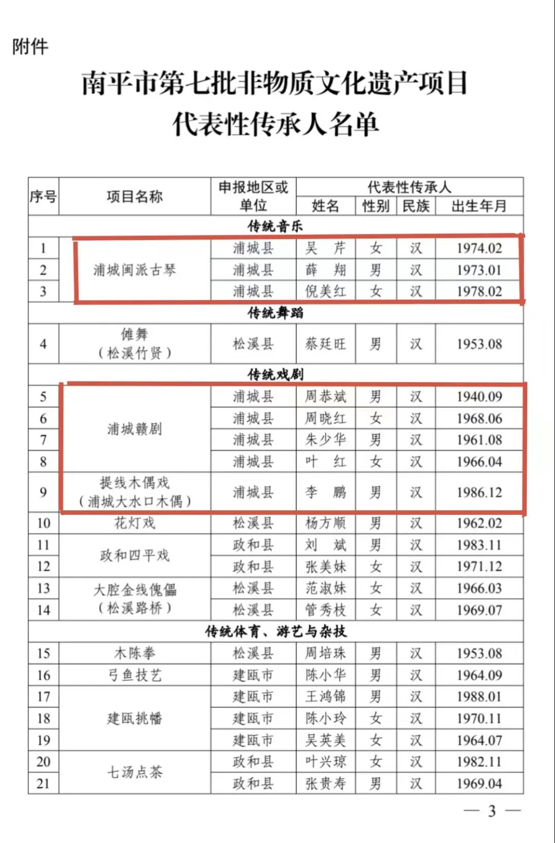 祝賀!浦城縣新增市級非遺代表性傳承人16人