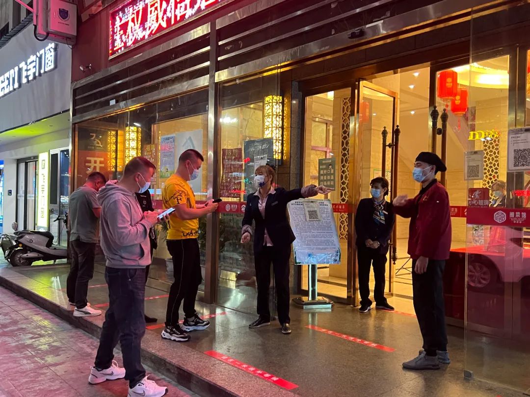 11月23日晚,縣公安局、縣市場監督管理局組織人員全面檢查城區賓館、洗浴中心、酒店與餐飲行業等經營主體疫情防控措施落實情況。