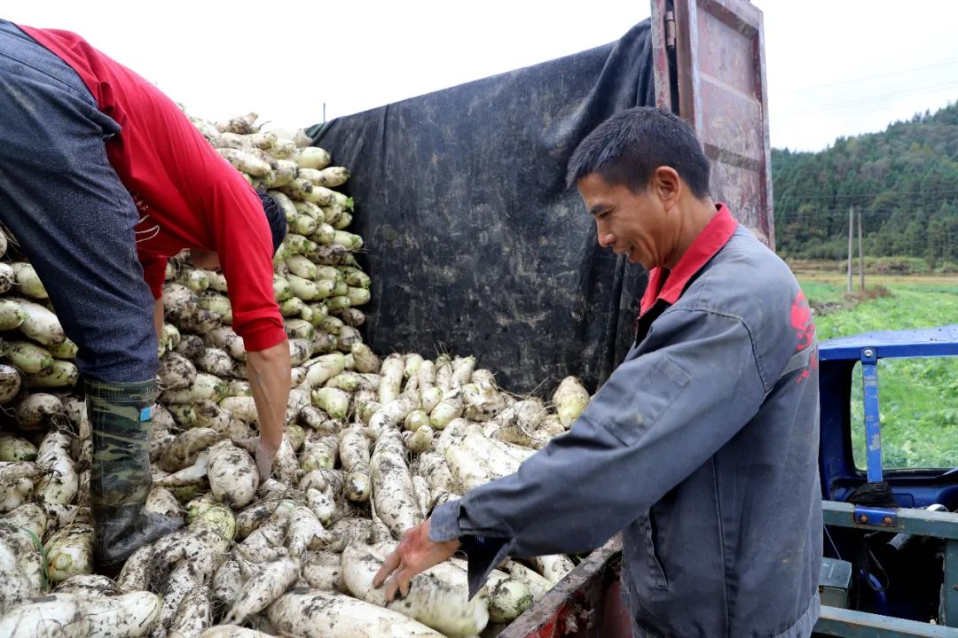 眼下正是白蘿卜出產時節,11月28日,在浦城縣山下鄉山下村王口自然村的田間,村民們有的拔蘿卜、有的搬運、有的裝車,大家忙而不亂,分工有序進行,一片忙碌的豐收景象。
