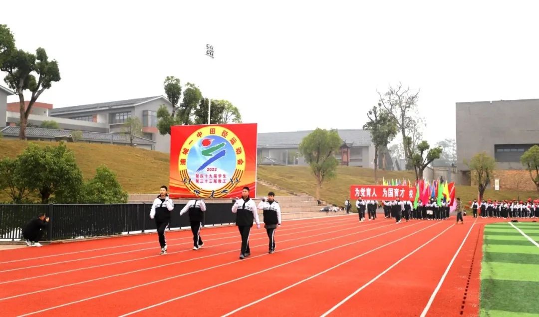 12月7日上午,浦城一中第49屆學生、第33屆教工田徑運動會隆重開幕。全體師生齊聚田徑運動場,共同見證這場青春盛會。 彩旗在晨風中飄揚,激昂的音樂在田徑運動場上回蕩,伴隨著《運動員進行曲》的奏響,國旗隊護送著鮮艷的五星紅旗緩緩入場,校旗隊、會旗隊、彩旗隊、各班級代表隊緊隨其后依次入場。他們步伐整齊、口號嘹亮。朝氣蓬勃的笑容、迎風飛舞的彩旗無不展現(xiàn)出一中學子精神抖擻、意氣風發(fā)的精神面貌和奮發(fā)有為的青春風采。 開幕式結束后,男子、女子100米、200米、800米徑賽預賽、預決賽,以及投擲實心球、立定跳遠、跳高、跳繩等田徑賽陸續(xù)開賽。賽場上,運動員們發(fā)揚更高、更快、更強的奧運精神,盡顯一中體育健兒的風采;志愿者們無私奉獻,任勞任怨,維持校運會會場秩序;各個班級守時守紀,文明觀看,為運動健兒加油助威。