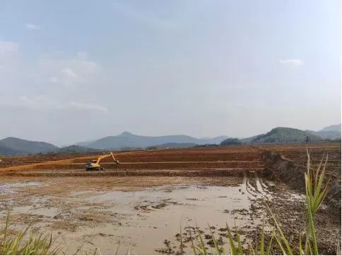 踏著浦城四月明媚春光,道路旁遍地黃花分外香,眼下春耕備耕正當時,不負農時不負春。在浦城縣石陂鎮申明村高標準農田建設項目現場,機聲隆隆,挖掘機、推土機正在田間忙碌著,一片片田地成方成塊、開闊平整,一條條寬敞便利的機耕道和水渠縱橫交錯,一幅現代化農業發展藍圖已然繪就。 “這是育秧大棚,這塊整個山坡下移了4米,這是有機肥料,這是在改良土壤,這是再生稻科技小院……這個村已流轉土地面積90%,做農業剛剛起步非常辛苦,如果沒有國家政策、政府支持和科技助力根本做不起來。”隨著承包這片土地的種植大戶福建山農米業有限公司陳兆武董事長矯健的步伐和鏗鏘的介紹,我們感受到了高標準農田誕生的不易和如今建成的欣喜。