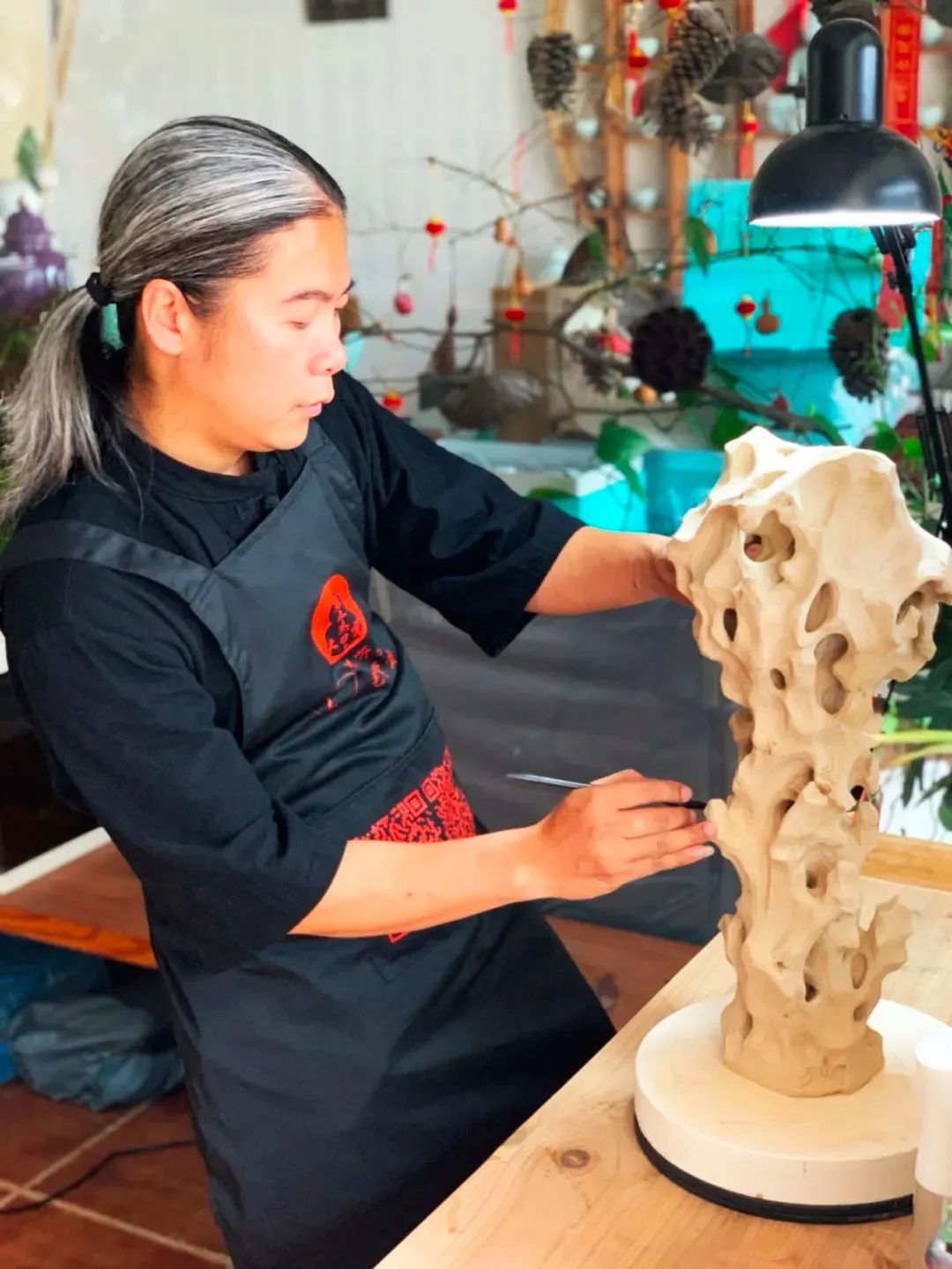 創作中的熊文杰(受訪者供圖) “我與陶瓷結緣三十多年了,三十多年里,我學手藝做陶瓷,做出口貿易把中國陶瓷賣到世界各地,也遵循本心成為專注于產品創作與制作的設計師。”熊文杰說,他喜歡天馬行空的設計與制作,賦予作品新的藝術生命和文化內涵,也不給自己的創作設限,因為,在不同的環境、經歷、感悟中,創作出的作品也各有不同的風格。2014年,在經歷一場意外,歷經三次生死之后,獲得“重生”的他,對人生和處世有了新的體會與詮釋,歷時一年半創作出了“福抱”“福樂”“福佑”福星小沙彌系列作品。小沙彌雙眼微瞇,嘴唇微咧,衣紋線條流暢,做工精細考究,刻畫栩栩如生,將赤子童真展現得淋漓盡致。2020年,該系列作品先后被中國閩臺緣博物館永久收藏;2021年,被福建省博物院永久收藏。 “與大口窯邂逅的偶然際遇,如一顆石子般,在我的內心蕩開了一道‘返鄉’的漣漪。”熊文杰說,他深知,浦城歷史悠久,文化底蘊深厚,先民們更是因地制宜,依托南方多山地的地形特征,率先試水建造形態更高級的龍窯,讓印紋硬陶和原始瓷器燒造變成了現實。曾獲評2005年度“全國十大考古新發現”的貓耳山窯址群,可謂“龍窯之祖”。從陶到瓷,一代代的浦城工匠們傾注心血,獨具匠心的設計讓產于閩北山間的瓷器出山過海,將優秀傳統文化傳播到世界各地。“當我把大口窯遺址的照片發到朋友圈的時候,引起了省內陶瓷界友人的廣泛關注,追夢大口窯的心也更加躁動了起來。”熊文杰說,隨后,當地政府官員滿滿的招商誠意,更是猶如一劑“催化劑”,讓他“返鄉”逐夢千年窯火的心思愈發強烈。 然而,返鄉,并非“說走就走”的旅行。面對人生的十字路口,他也在糾結中權衡。“我的師父吳志勇大師,當和他聊起返鄉這件事時,他說,浦城積淀著豐厚的歷史,這里的土壤不僅生你養你,更滋養著你,能為家鄉做一些貢獻,力所能及地反哺家鄉,也是一樁好事。”熊文杰說,師父的鼓勵,成為了他毅然選擇返鄉的強大動力。于是,他回到了浦城,積極參與到大口窯青白瓷文化的傳承、推廣之中,不僅幫助當地申請注冊商標保護知識產權,還廣泛開展非遺文化進校園、進社區等活動,在傳授技藝的同時,更把浦城窯火的歷史講給孩子們聽。“數千年前,浦城陶瓷就猶如一座大山,我的歸來只是一粒沙子,希望所有熱愛陶瓷的朋友們都能加入進來,相信無數沙子在一起,重塑一座大山一定不是夢。”熊文杰說。